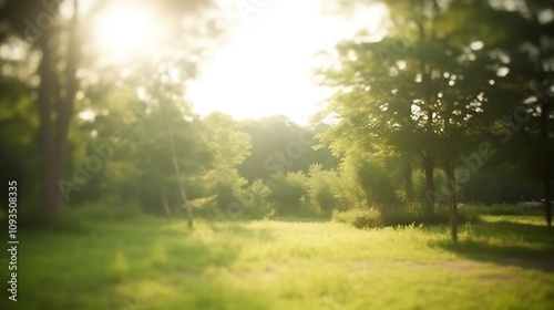 Sunlit Green Meadow With Trees In Background