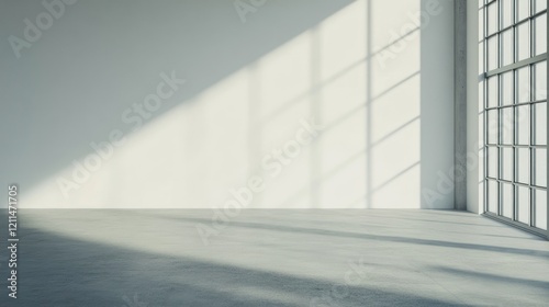 Sunlit Industrial Interior: Minimalist Room with Large Window