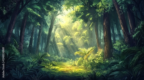 Sunlit Jungle Path, Lush Forest Background, Game Design