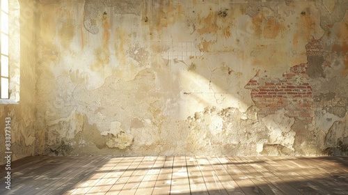 Sunlit living room highlighting an ancient empty grunge wall