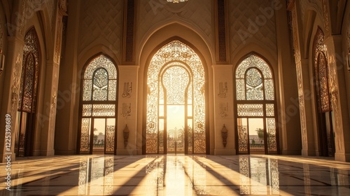 Sunlit Mosque Interior With Intricate Archways And Windows