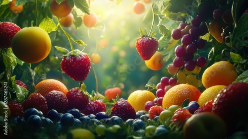 Sunlit Orchard Fruits Abundance