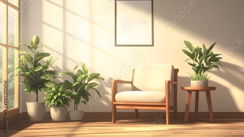 Sunlit Room Featuring Wooden Chair and Potted Plants