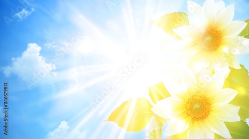 Sunlit Sunflowers Basking in Bright Summer Sky