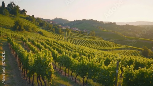 Sunlit Vineyard Landscape: Rolling Hills of Tuscany
