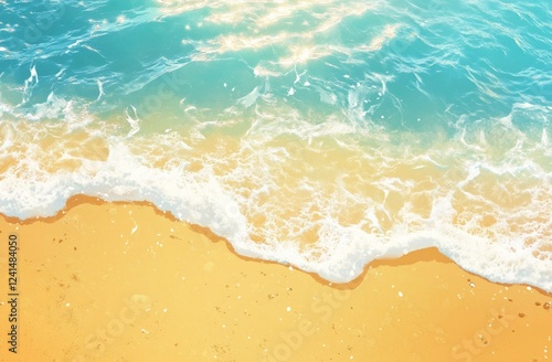 Sunlit waves gently caressing a golden sandy beach shoreline