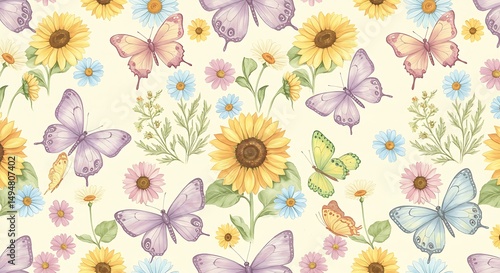 Sunny butterflies and blooms pattern