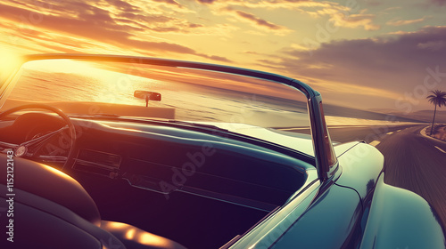 Sunny Days – Vintage Convertible Cruising Down a Coastal Highway