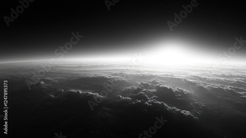 Sunrise, alien planet, space, clouds, black & white, science fiction, atmospheric