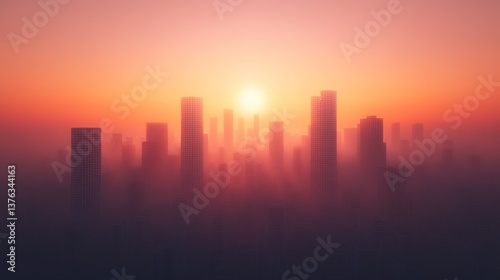 Sunrise Cityscape: A Misty Metropolis at Dawn