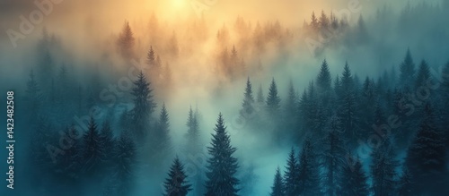 Sunrise Foggy Mountain Forest Wallpaper