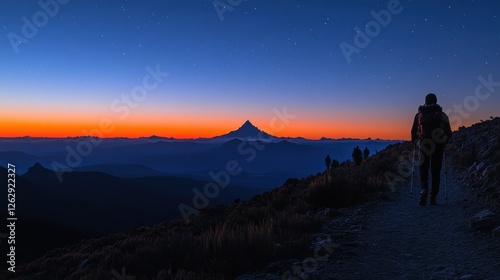 Sunrise Hike, Mountain Summit, Trekking, Majestic Peak