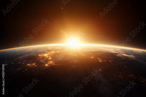 Sunrise over Earth captured from space showcases vibrant colors and glowing cities highlighting the beauty of our planet