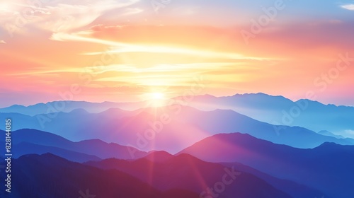 Sunrise over mountains close up, focus on, copy space Double exposure silhouette with mountains