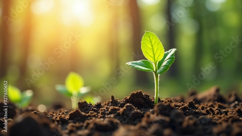 Sunrise Sapling: A tiny sprout emerges from rich soil, bathed in the golden light of a rising sun, symbolizing new growth, hope, and the promise of a brighter future.