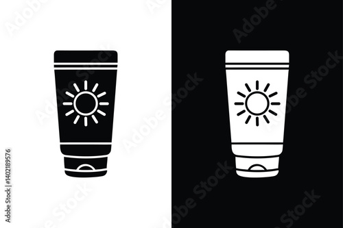 Sunscreen Solid Icon. Modern Skincare Tube for Summer and Travel Themes
