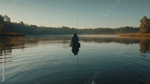 Sunset Angler: Man Casting His Line in a Serene Lake, Embracing the Twilight.