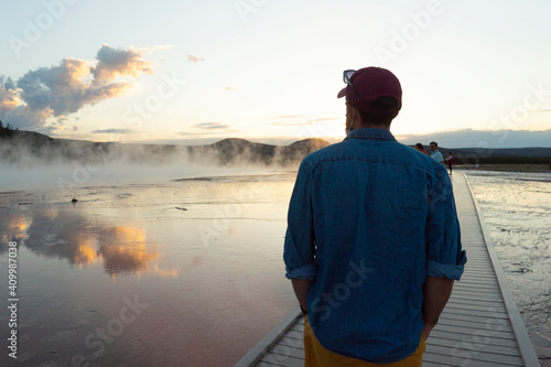 Sunset At Grand Prismatic Spring in Yellowstone National Park