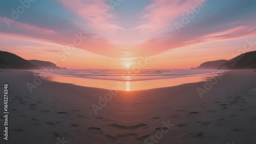Sunset at the Beach with Vibrant Sky and Calm Waters