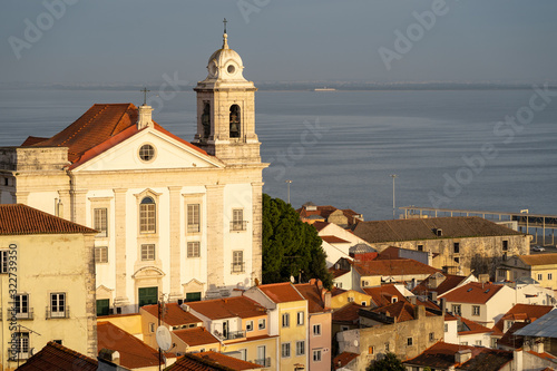 Sunset at the Miradouro de Santa Luzia viewpoint in the Alfama district, Lisbon Portugal