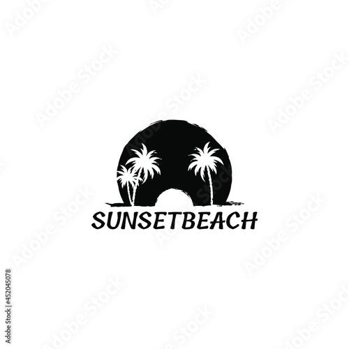 Sunset beach palm sun Nature Landscape view logo design in black color