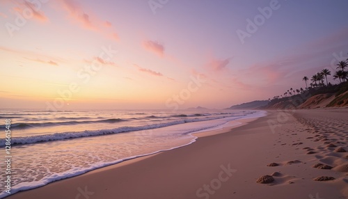 Sunset beach scene coastal paradise nature photography serene environment wide angle tranquility