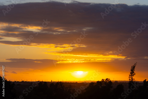 sunset behind the wind turbines in the Essaouira region in Morocco