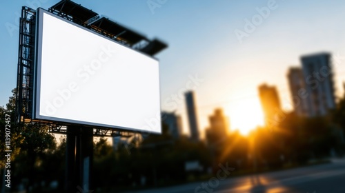 Sunset billboard advertising display urban environment digital content cityscape viewpoint marketing concept