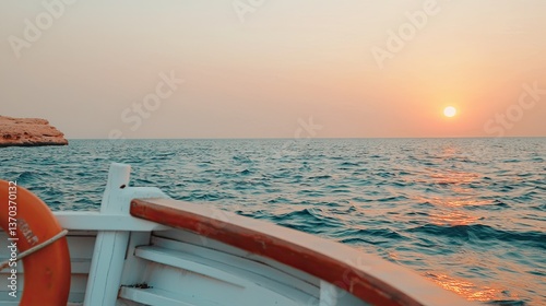 Sunset boat ride over tranquil waters coastal location scenic view serene environment