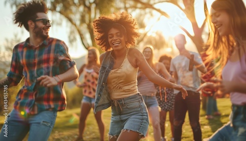 Sunset Celebration: Diverse Youth Dancing in Joyful Harmony