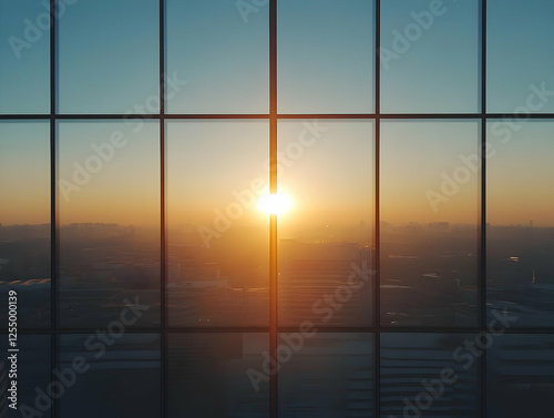 Sunset Cityscape View Through Modern Window