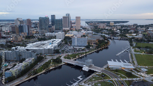 Sunset Comes Throught Ovecast Skies Aerial Perspective Tampa Bay Florida