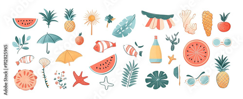 Sunset Dreams: Abstract Summer-Themed Vector Art with Hand-Drawn Symbols, Perfect for Modern Design Templates