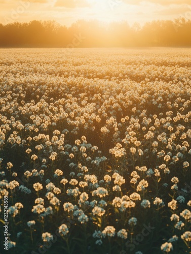 Sunset Field of White Flowers,