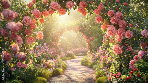 Sunset garden of roses a romantic valentines day illustration