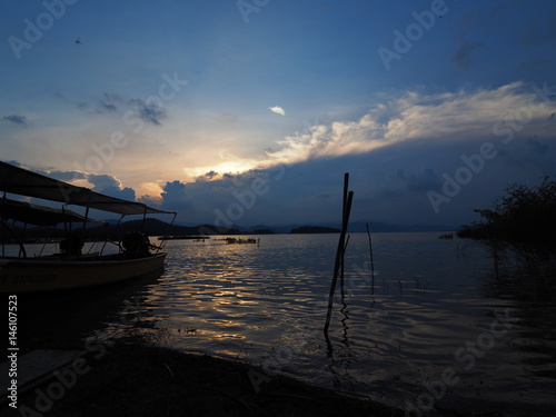 sunset in evening at dam