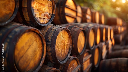 Sunset light casts soft glow on stacked yellow barrels