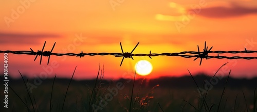 Sunset over barbed wire fence (1)