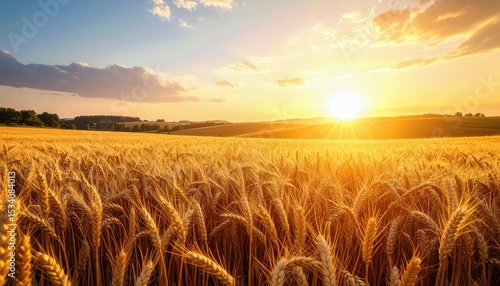Sunset Over Golden Wheat Field with Vibrant Sky and Horizon
