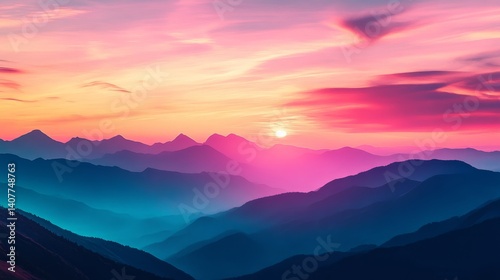 Sunset Over Majestic Mountains: Captivating Landscape Photography with Vibrant Sky and Scenic Horizon
