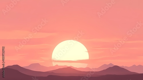 Sunset over Mountains with Pink Sky and Silhouette Illustration