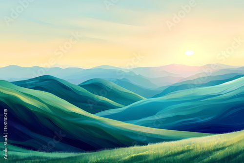 Sunset Over Rolling Hills A Digital Landscape isolated on transparent background