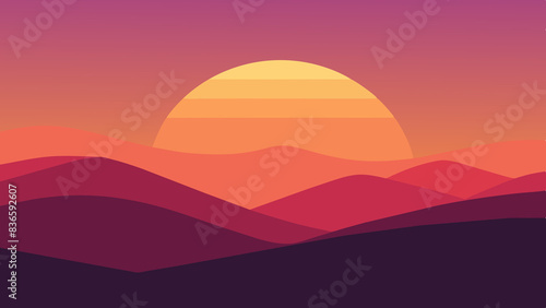 Sunset over Rolling Hills Abstract Minimalism in Vector Art