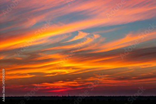 Sunset over sea beach area field with colorful aesthetic sky clouds