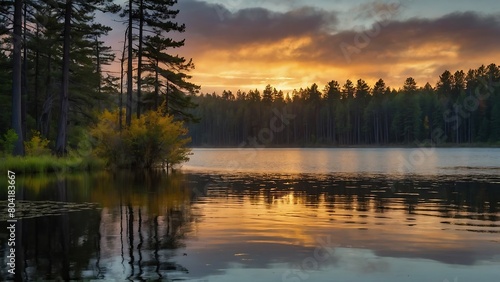 sunset over the lake Tranquil Pine Lake Reflections of Serenity