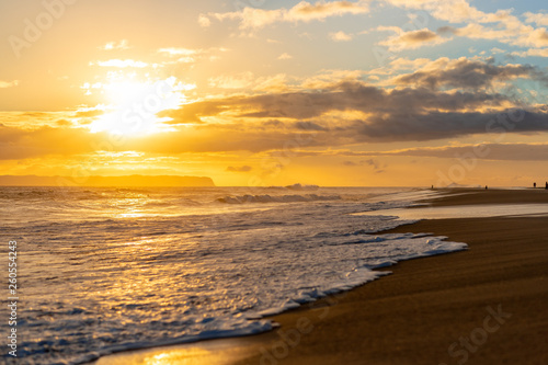 Sunset over tropical island beach, Hawaii, Kauai