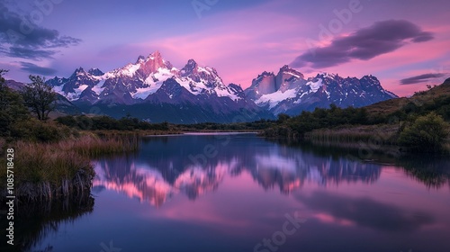 Sunset Reflections over Majestic Mountains and Tranquil Lake