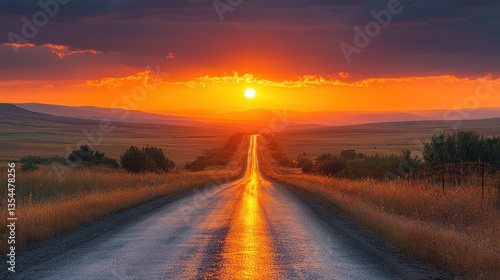 Sunset Road to Adventure: A Vibrant Landscape Painting