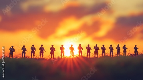 Sunset Salute: Toy Soldiers in Perfect Formation