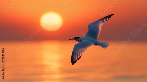 Sunset Serenity: A Seagull's Flight at Golden Hour